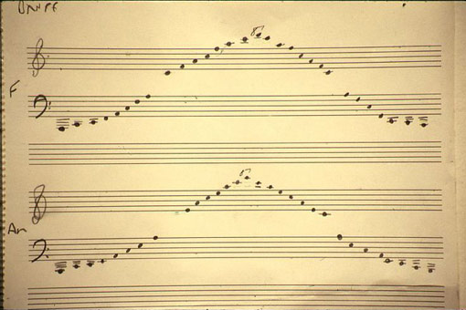 The SLIDESHOW comprises drawings and musical notation, plus photographs of these works. Each performance is titled and further information can be obtained from the CONTACT/CV section. Please use the contact email address in this section if you would like to purchase an original drawing, print or photograph from this or the WORKS ON PAPER section. STROLL ON was recreated at Bloomberg Space as part of the ‘1979’ exhibition and features in the MAJOR WORKS section.