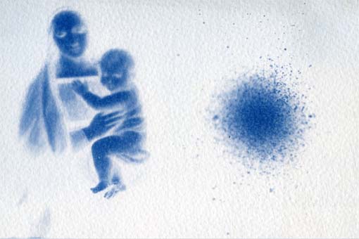 Many of these images are monoprints – tinted photographs, multi-media surfaces or cyanotypes – which have been burned into using a Sunshine Recorder.