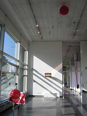 WAVE-WALL III features three giant pendulums, reaching from floor to ceiling, each of which have radio-cassette players as weights. Images overlaid onto the wall and windows of the gallery act as graphic representations of the specially-composed music being played continually through each cassette player, turning the gallery into a 'sound-chamber'. This music, which rises and falls in a similar fashion to the continuous motion of the pendulums, was derived from sound-samples of a variety of natural and man-made waveforms recorded and reprocessed by Hooker. The continuous audio cycle that the work generates commences with 'live'…